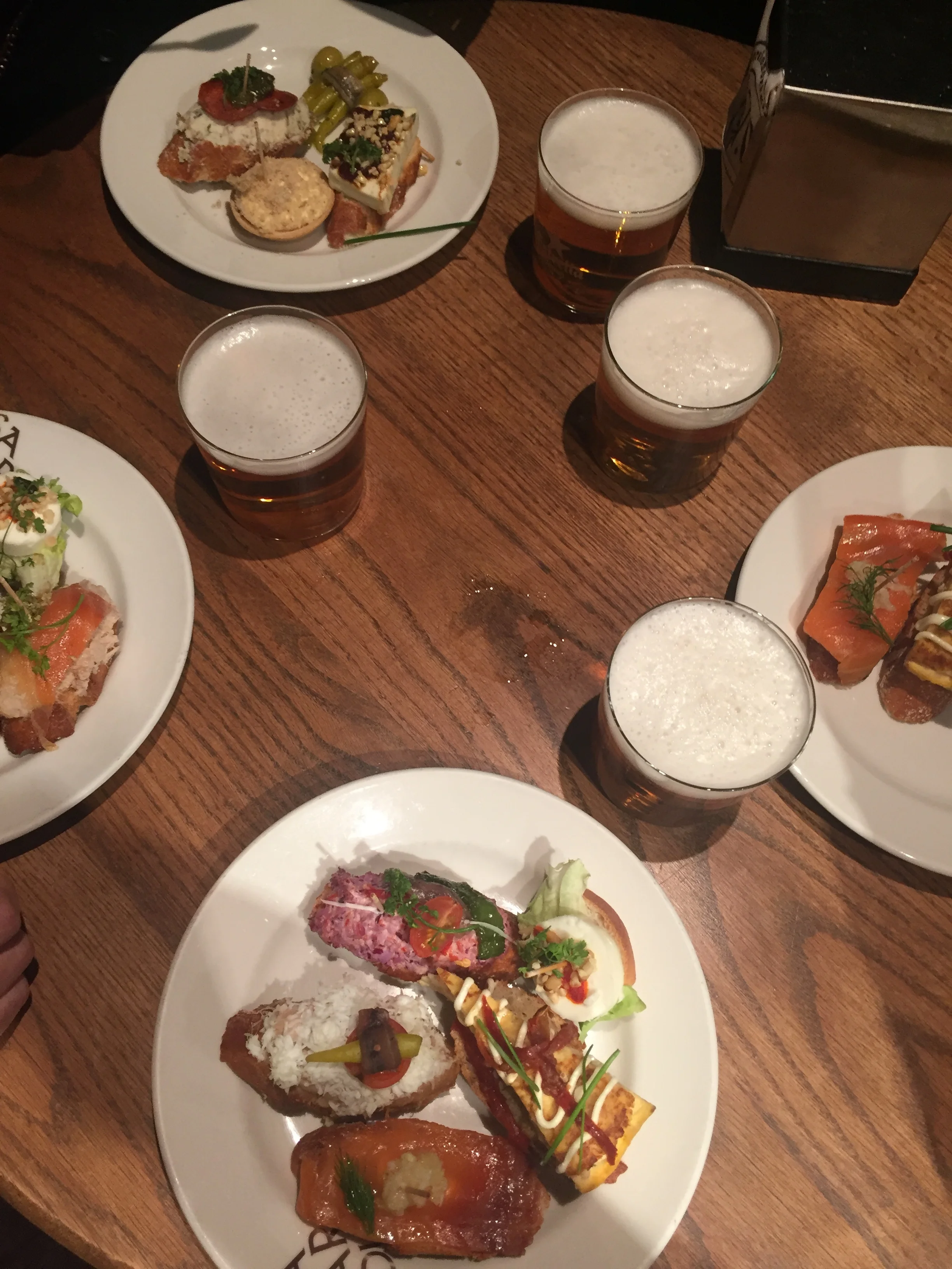 - had an early night in after hanging with Jason at a few bars and went to an awesome tapas place - you go up to the counter, pick whatever you want, and then pay per toothpick that's on your plate at the end. OM NOM NOM this was only one round.